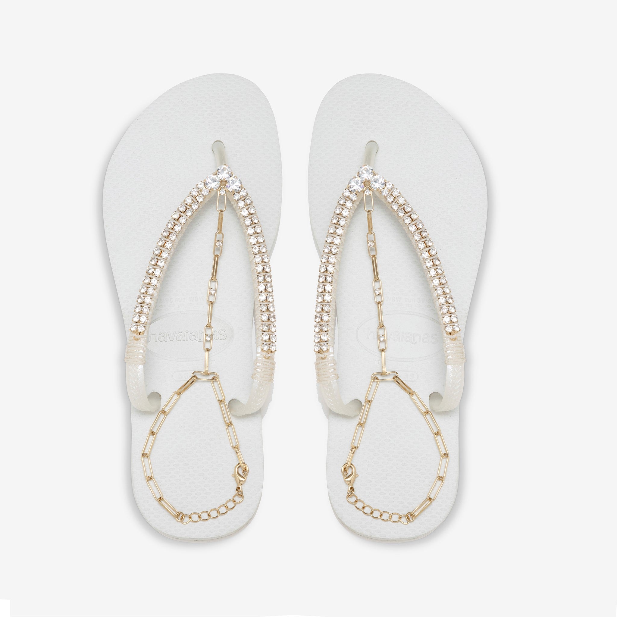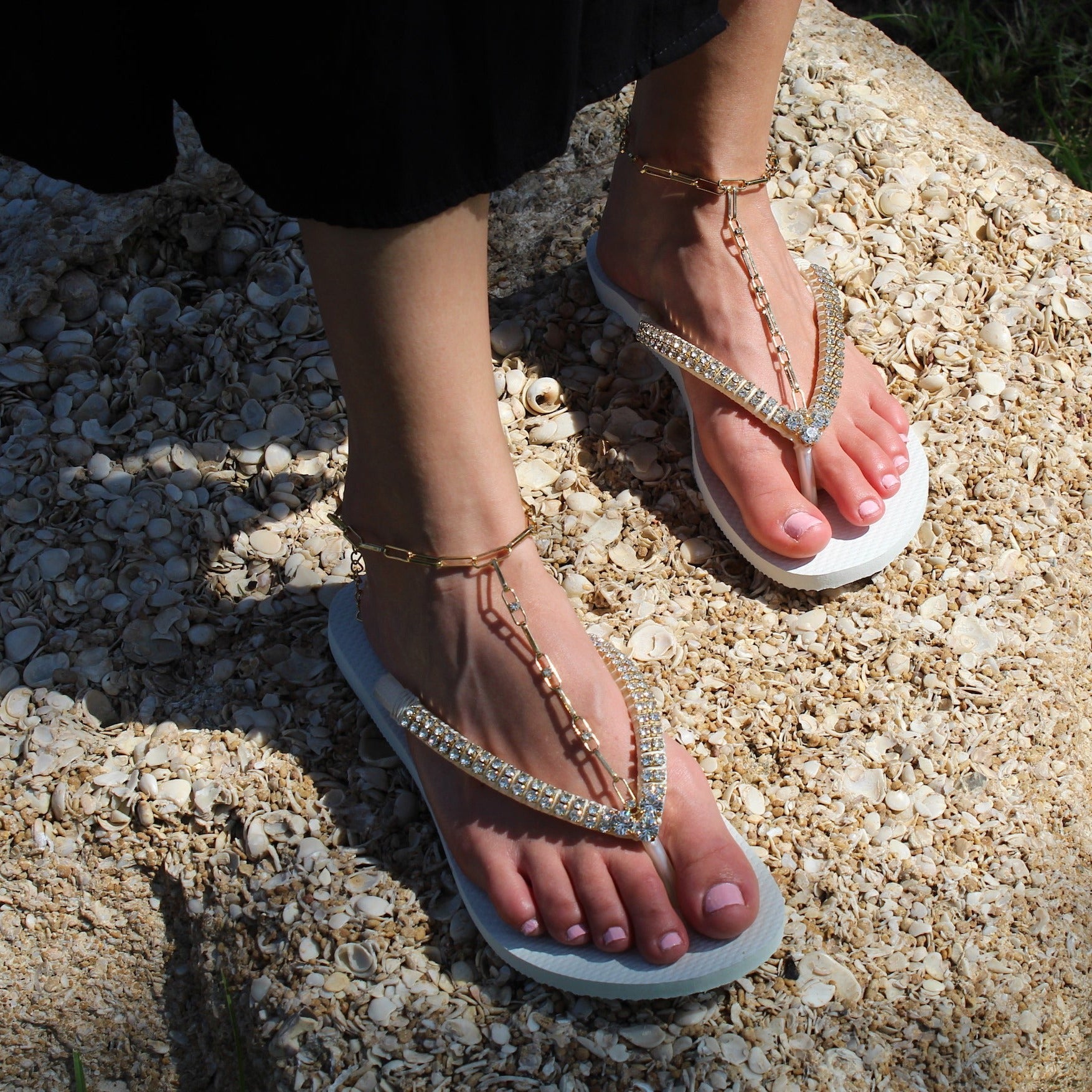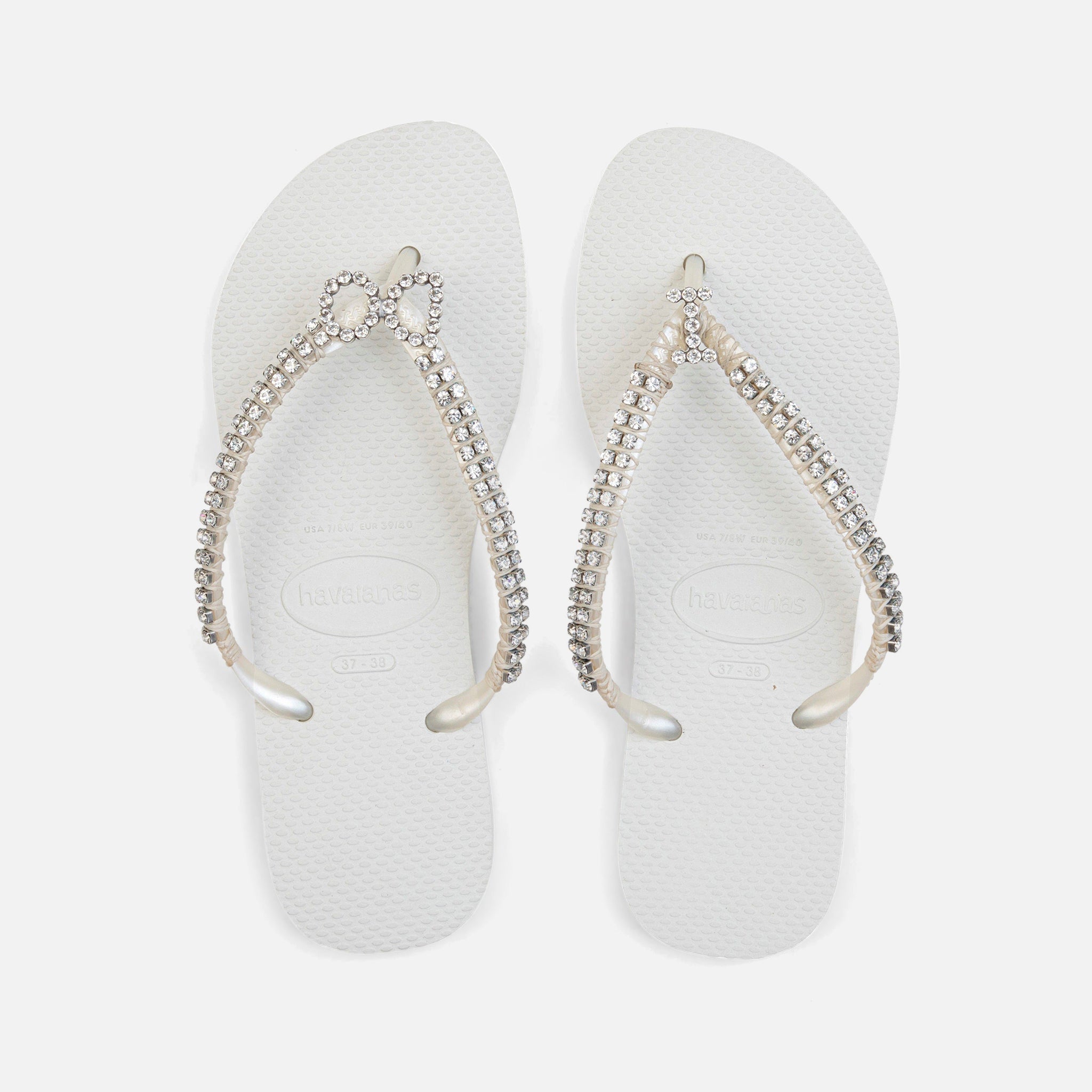 Ever worn jewelry on your feet? Sparkle with every step in our iconic crystal flip-flops.