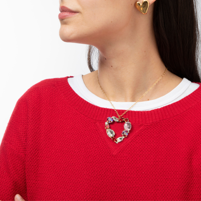With V-neck tops, longer pendants work well. For high-neck tops, opt for shorter pieces that rest closer to your collarbone.