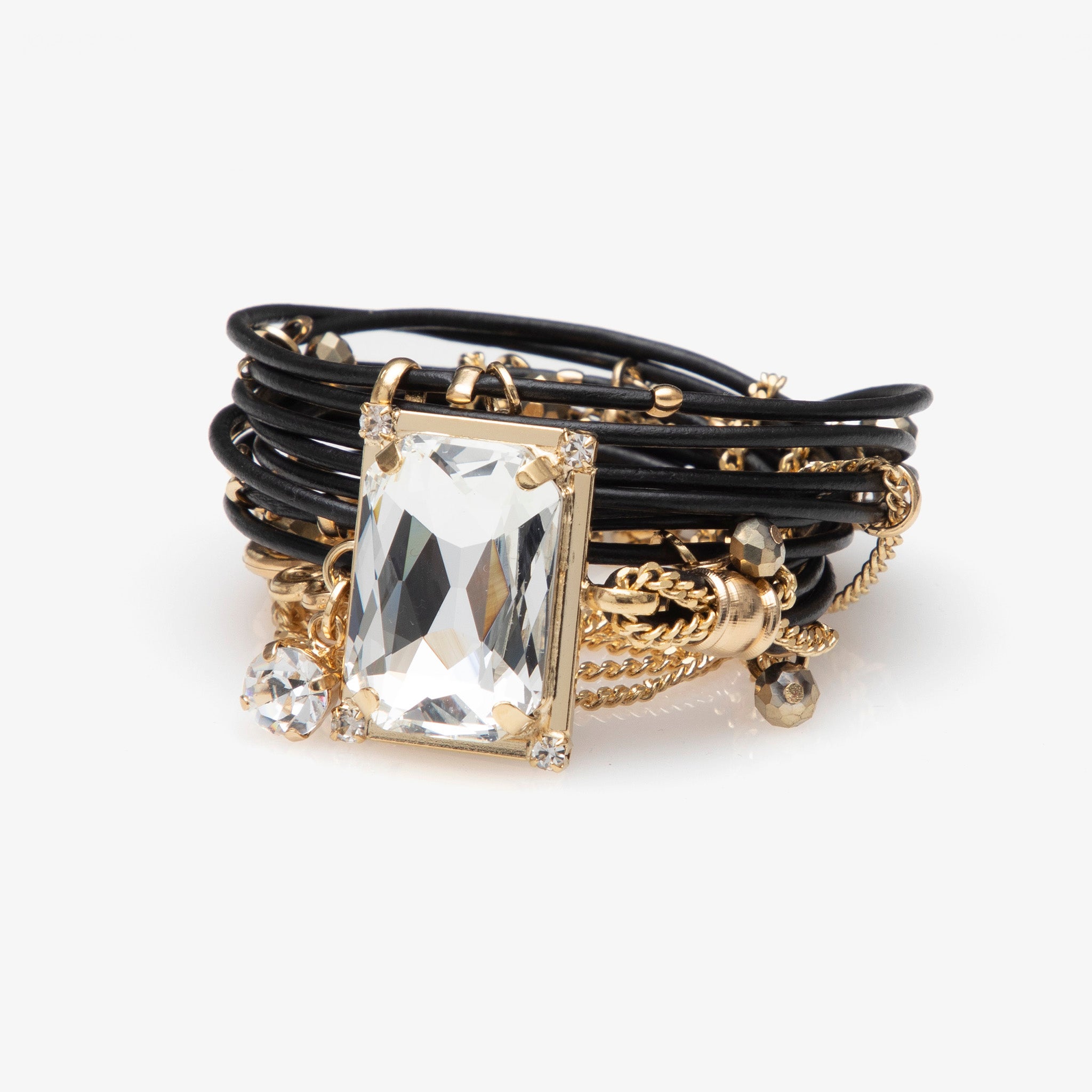 18K Gold finish, fine leather, European crystals